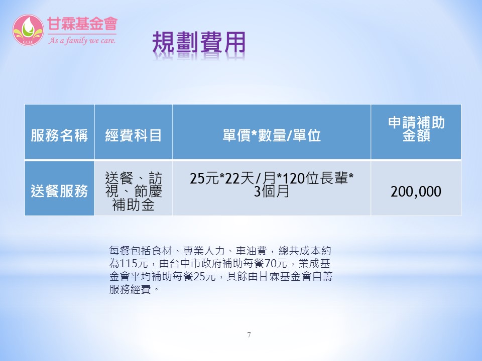 入選單位四:財團法人台中市私立甘霖社會福利慈善事業基金會「聽見角落的聲音-弱勢獨居長輩送餐服務」